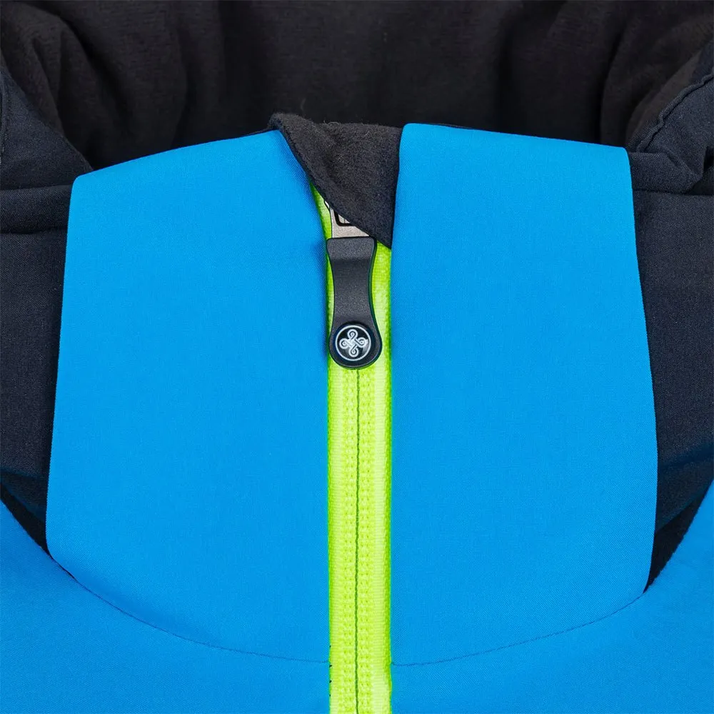 The jacket is equipped with, among other things, four external pockets, a ski pass pocket, and a back pocket for snacks, first aid kit or other essentials needed on the slopes.