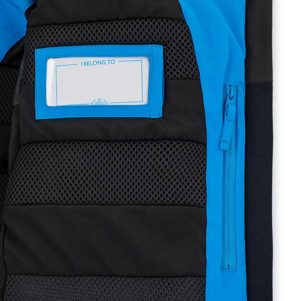 On the inside there is a anti-snow collar, a glasses pocket with cleaning cloth, a name tag and a zippered pocket for valuables.